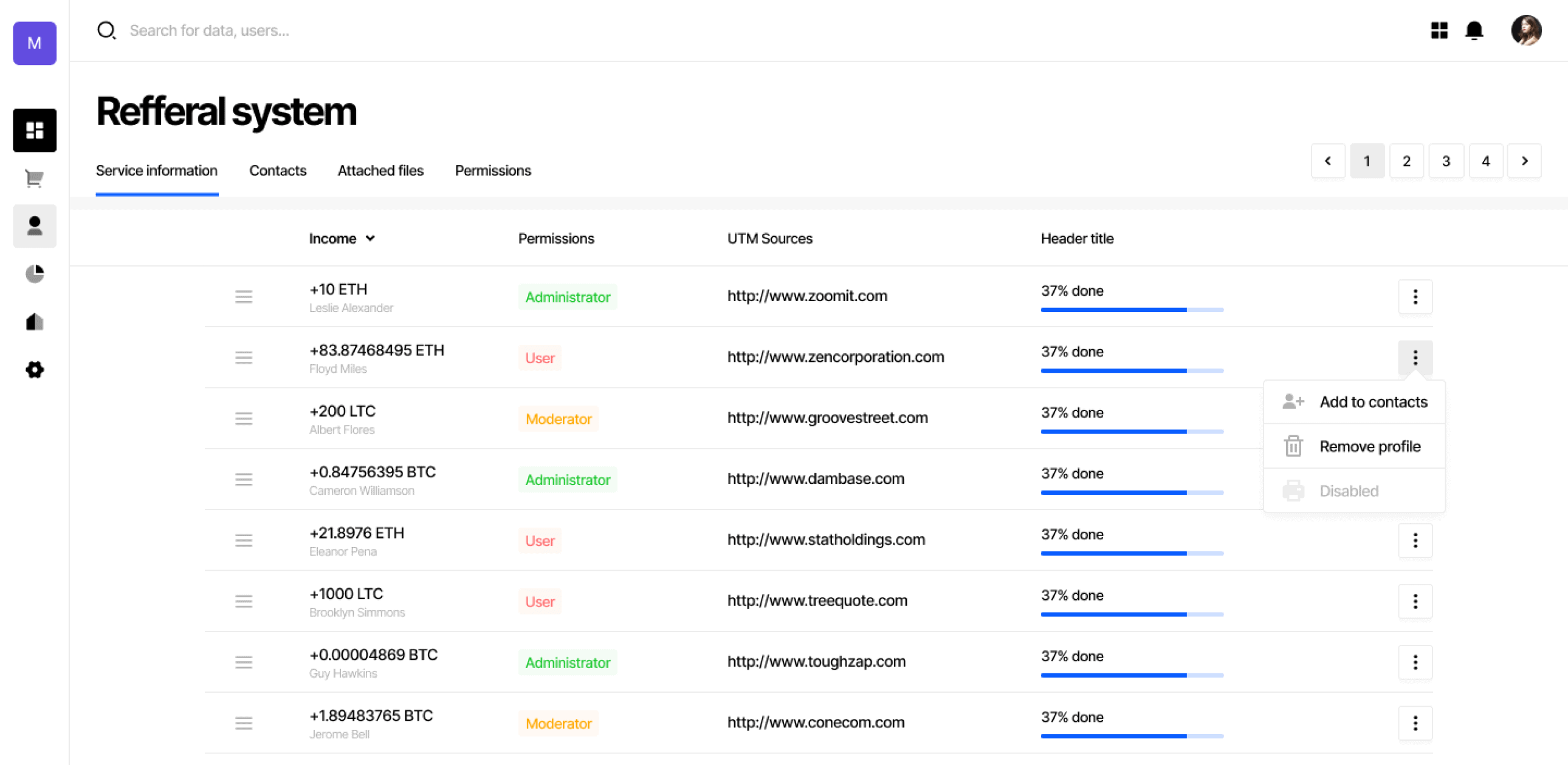 Information on transitions from various traffic sources: search engines, ad block, website, forum